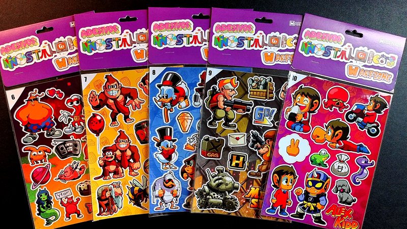 Adesivos Nostálgicos é uma coleção lançada pela WarpZone que relembra a época em que comprávamos adesivos na banca de jornal. Cada cartela traz uma coletânea de poses, cenas icônicas e itens de um jogo em específico que você pode destacar e colar no seu armário, janela, notebook ou onde quiser.